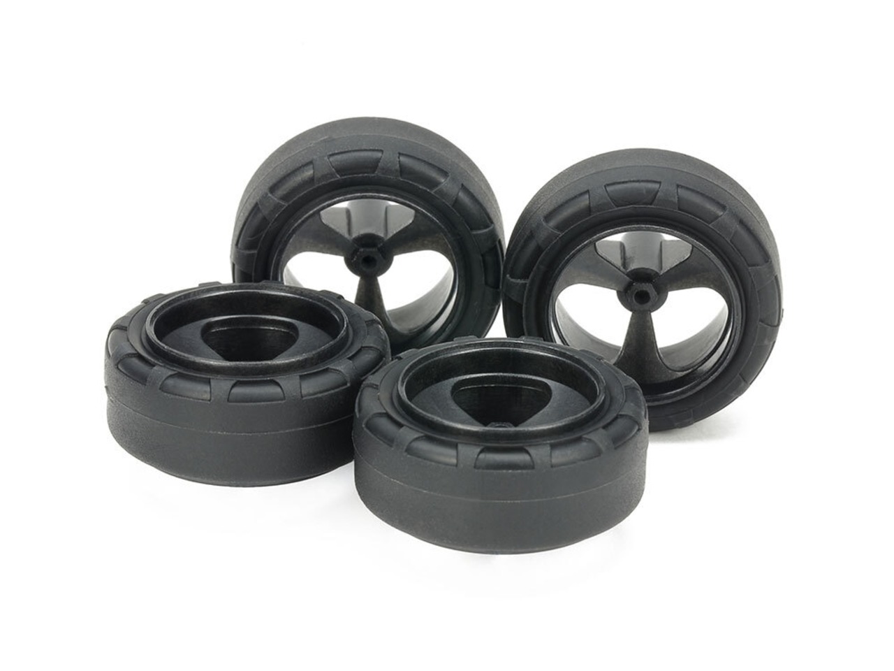 プレミア:Item No:95635ミニ四駆特別企画(パーツ) スーパーハード小径ナロータイヤ (24mm) &カーボン強化3本スポークホイール
