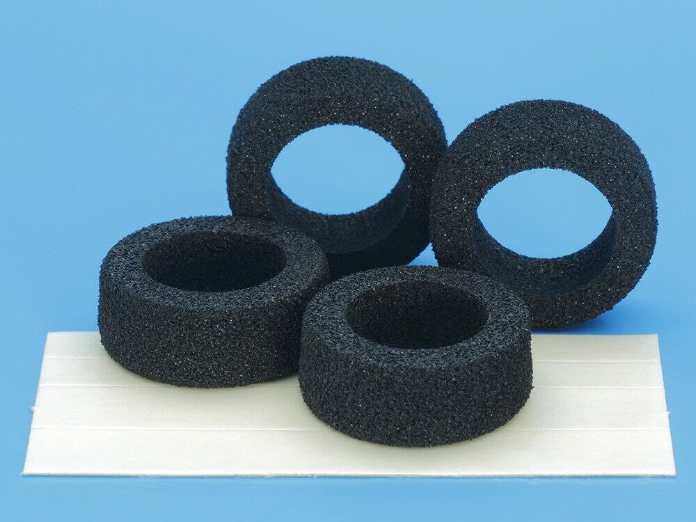 ●跳ねにくいことで安定した走行が可能な、レースで人気のソリ ッドタイヤより、さらに低反発な素材を使用したタイヤ。 ●スポンジならではの軽さもポイントです。 ●10mm幅のナロータイプ。